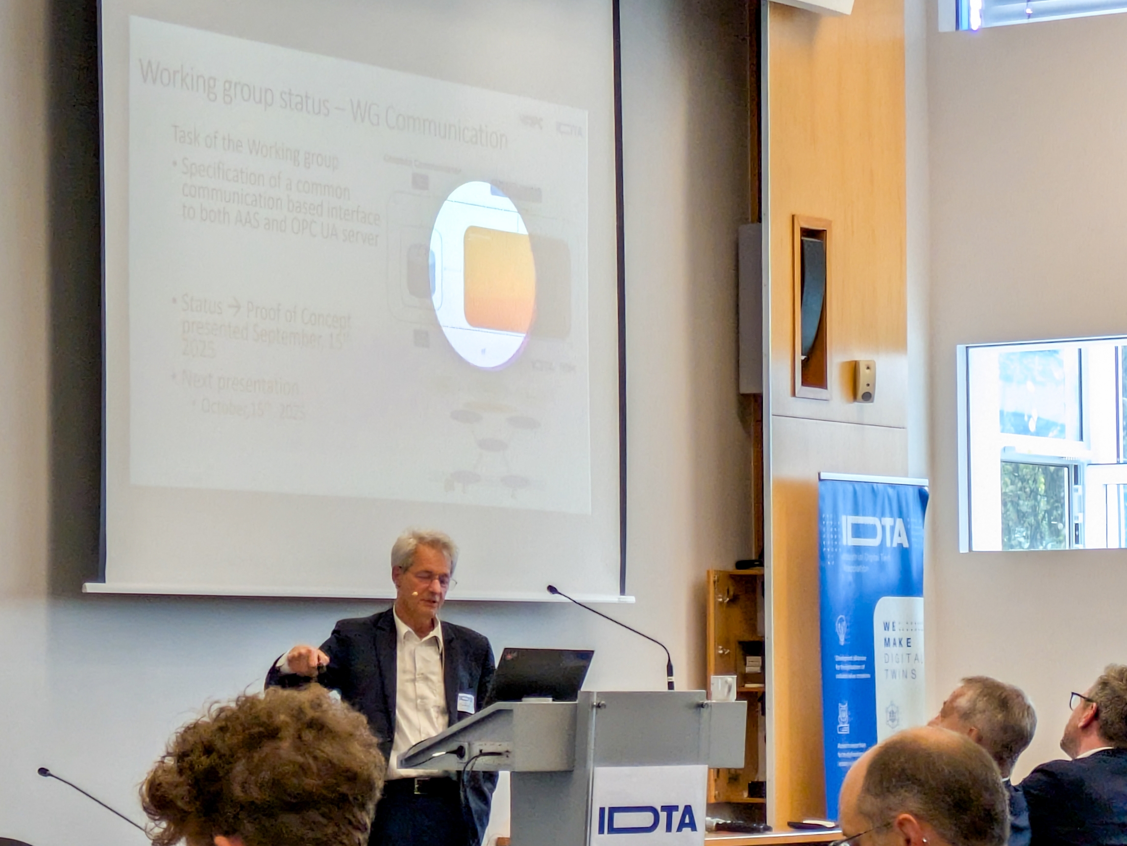 Prof. Christian Diedrich hat in seinem Vortrag auf den Tech Days der IDTA am 01.10.2025 in Frankfurt am Main die aktuellen Ergebnisse vorgestellt, wie die Verwaltungsschale (AAS) mit dem Informationsmodell von OPC UA zusammen wirken kann bzw. sie sich jeweils einander ergänzen.